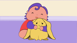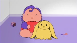 My concept evolved quite quickly. My idea was to depict the rougher side of love showing a baby hugging her rabbit with a little too much enthusiasm until the end title reads “love hurts”.